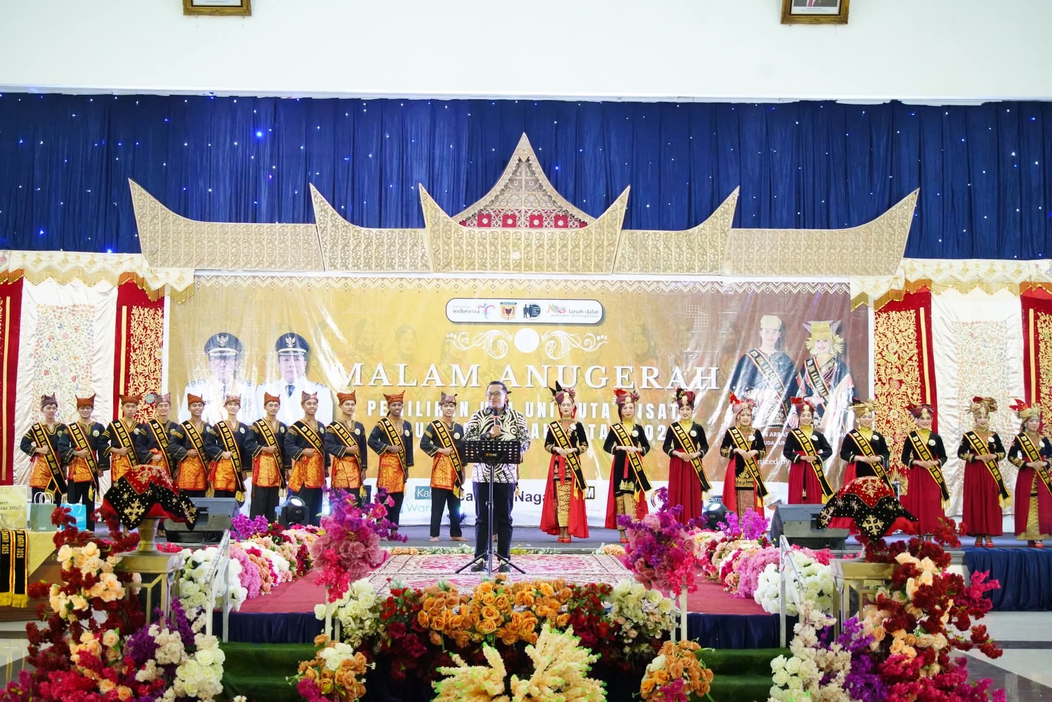 – Bupati Eka Putra, SE. MM. membuka secara resmi malam anugerah Uda Uni Duta Wisata Kabupaten Tanah Datar tahun 2025, di Gedung Nasional Maharajo Dirajo, Batusangkar, Sabtu malam, (9/8/2025).