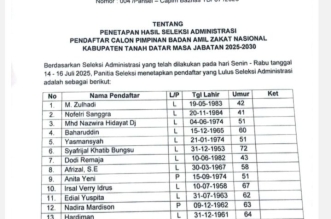 Tanah Datar, bakaba.net – Pengurus Dharma Wanita Persatuan (DWP) Kabupaten Tanah Datar Periode 2024 – 2029 dikukuhkan bersama Pengurus DWP Kabupaten/Kota se-Sumatera Barat. Pengukuhan dilaksanakan bersamaan dengan Musyawarah Daerah (Musda) DWP se-Sumbar yang digelar secara daring pada Selasa ...
