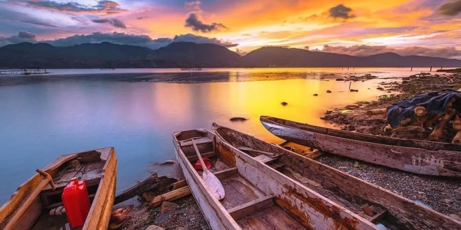 Pemandangan sunset di Danau Singkarak sangatlah romantis dan menjadi momen yang tak terlupakan.