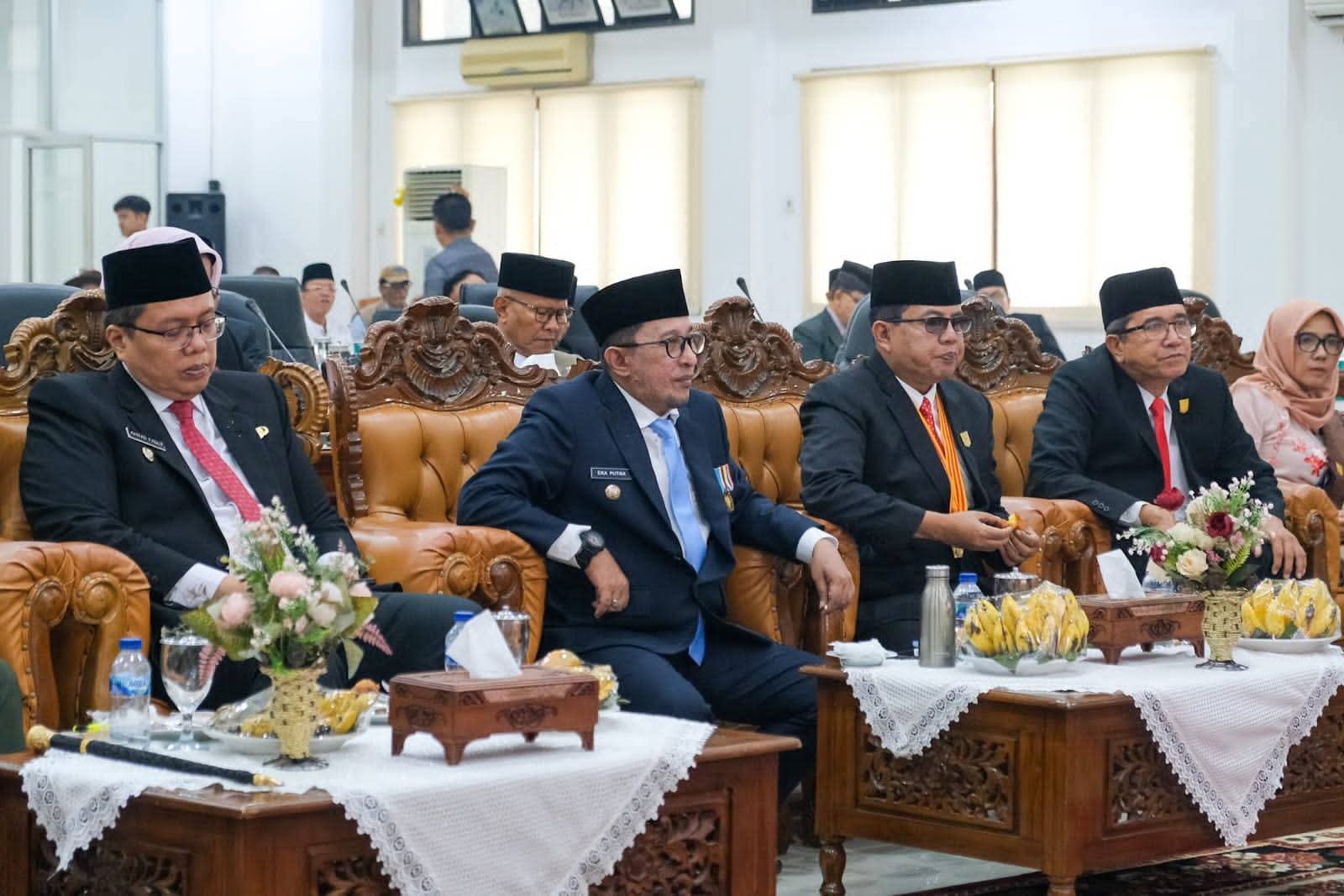 Rapat dipimpin Ketua DPRD Anton Yondra didampingi Wakil Ketua Nurhamdi Zahri dan Kamrita turut dihadiri Bupati Eka Putra dan Wabup Ahmad Fadly beserta kepala OPD dan undangan lainnya, Jum’at (15/8/2025) di ruang sidang utama DPRD setempat.