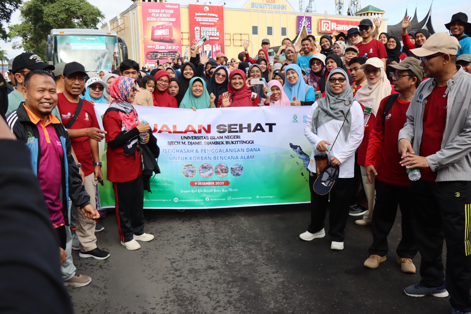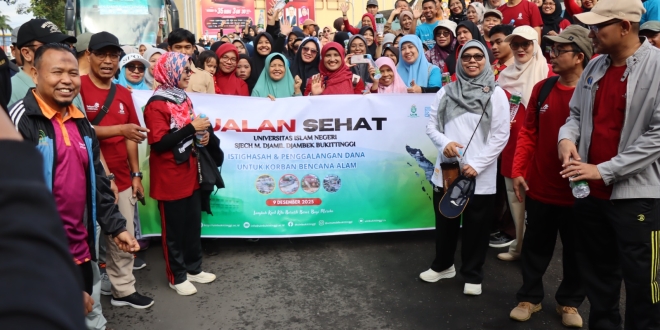 Bukittinggi, bakaba.net – UIN Sjech M. Djamil Djambek Bukittinggi merayakan Dies Natalis ke-59 dengan kegiatan jalan sehat, istighasah, dan penggalangan dana pada Selasa (9/12/2025). Acara ini menegaskan semangat kebersamaan sekaligus kepedulian sosial di tengah bencana yang melanda sebagian wilayah Sumatera Barat.