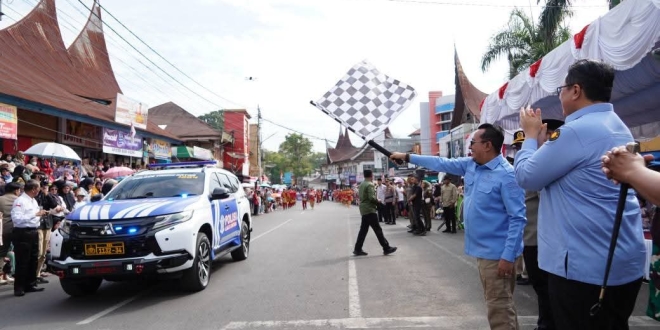 Pawai yang disaksikan oleh puluhan ribu pasang mata dari masyarakat kota Batusangkar dan sekitarnya itu dibuka dan dilepas secara langsung oleh Bupati Tanah Datar Eka Putra, SE, MM.