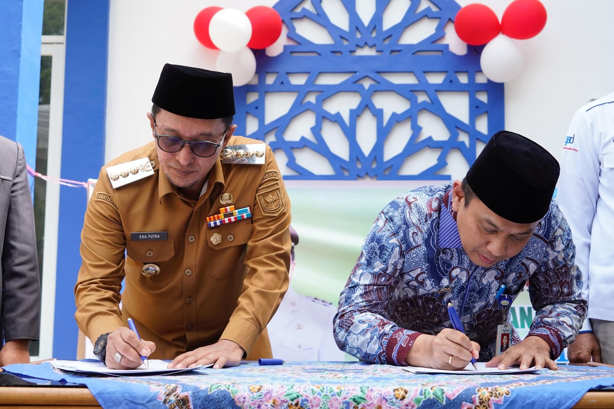 Bangunan yang merupakan bantuan Corporate Social Responsibility (CSR) Bank Nagari Sumatera Barat langsung diserahkan Direktur Utama Gusti Candra kepada Bupati Tanah Datar Eka Putra dan Ketua Umum MUI Tanah Datar Yendri Junaidi.