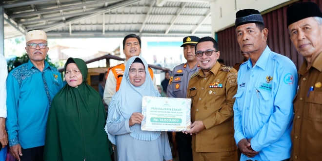 “Setelah mendapat berita musibah dan langsung disampaikan kepada pak Bupati, beliau yang sedang dinas ke luar daerah langsung instruksikan agar Baznas meninjau untuk diberikan bantuan, yang kita serahkan hari ini, setelah ditinjau ada beberapa rumah rusak sedang dan rusak ringan,” ujarnya.
