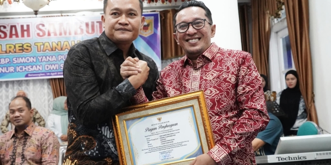 Tanah Datar, bakaba.net – Mutasi bergulir dijajaran Kepolisian Republik Indonesia, Kapolres Tanah Datar berganti dari AKBP. Simon Yana Putra, S.IK, M.H kepada Kapolres yang baru AKBP. Nur Ichsan Dwi Septiyanto, S.H, S.I.K, M.I.K. Malam pisah sambut pun berlangsung hangat dan penuh keakraban, Jumat (18/04) di Gedung Indojolito Batusangkar.