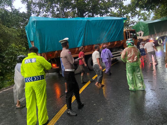 Naas tiba di Tempat Kejadian Perkara, truk tronton yang melaju pelan tidak kuat nanjak tepatnya di tanjakan Cubadak Bungkuak dan tergelingir masuk jurang sedalam 15 meter. (***)
