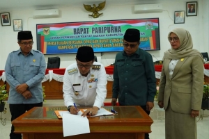 Selanjutnya, Pembacaan rumusan kesepakatan bersama DPRD dan Bupati Tanah Datar oleh Sekretaris DPRD Yuhardi dilaksanakan penandatanganan oleh Bupati Eka Putra bersama Ketua DPRD Anton Yondra didampingi Wakil Ketua Nurhamdi dan Kamrita.