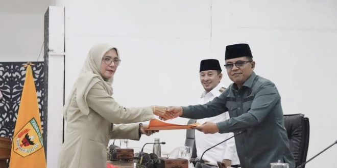 “Alhamdulillah, setelah melalui rangkaian proses pembahasan Rancangan Peraturan Daerah tentang Perubahan APBD Tahun Anggaran 2025, kemarin masing-masing fraksi telah menyampaikan pendapat akhir atas Ranperda tentang Perubahan APBD Tahun Anggaran 2025 dan hari ini kita tanda tangani bersama berita acara persetujuannya,” sampainya.
