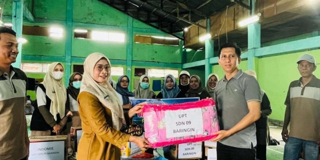 Bantuan itu diserahkan langsung oleh Kepala Sekolah SD 09 Baringin, majelis guru, dan komite sekolah kepada korban galodo di GOR Kecamatan X Koto.