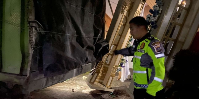 “Truk tersebut kemudian mencoba menanjak lagi, namun kembali mundur dan menabrak pelaminan rumah warga sebelah kanan,” ujar P. Finot.
