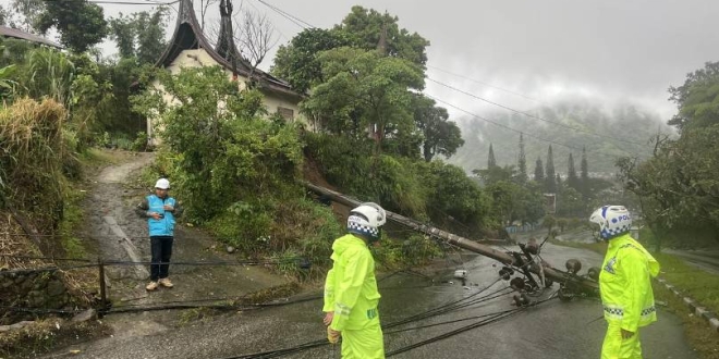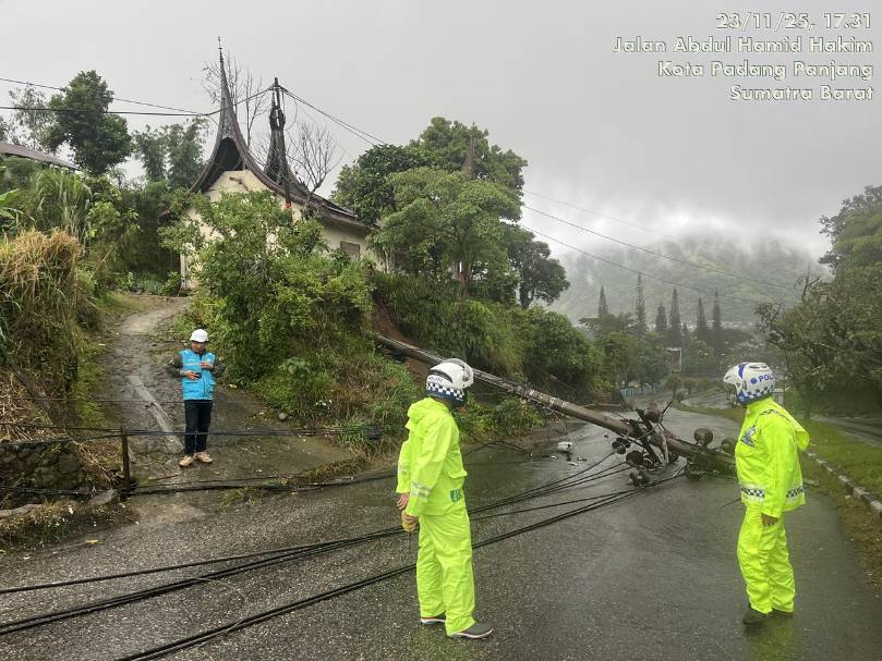 Kasat Lantas Padang Panjang AKP Pifzen Finot, S.H., M.H., melaporkan bahwa tiang listrik tersebut tumbang dan menghalangi jalan, sehingga kendaraan hanya bisa melaju satu arah.