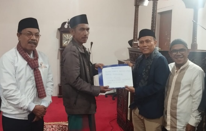 Pada kesempatan itu Sekretaris DPD Partai Nasdem Tanah Datar Adri Jinil didampingi Noviandri ST, menyerahkan sumbangan Alquran serta bantuan dana untuk pembangunan masjid Baitul Makmur tahun 2026 sebesar Rp 25 Juta. (***)